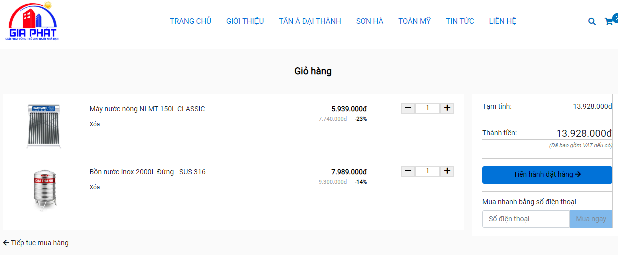 Bước 4: click vào nút Tiến hành đặt hàng để đặt mua sản phẩm