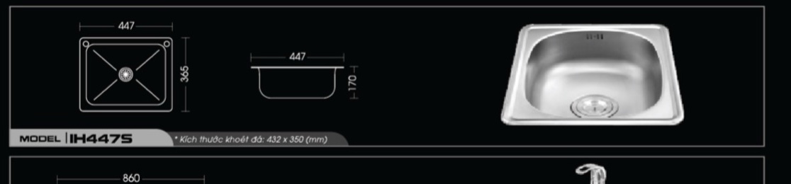 Thông số kỹ thuật Chậu rửa Inox Cao cấp 1H447S Sơn Hà