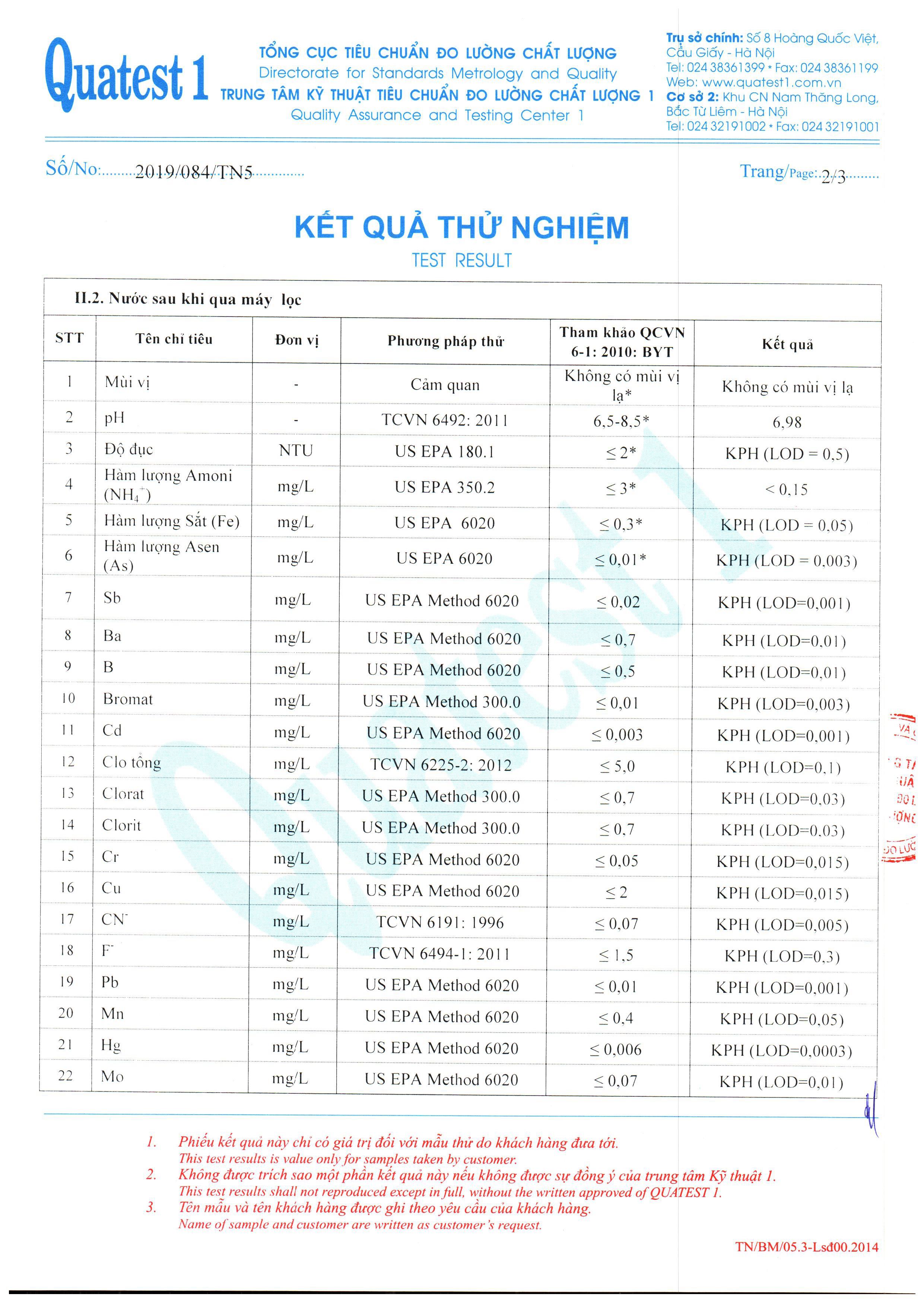 – Đạt tiêu chuẩn nước sạch QCVN 06-1:2010/BYT