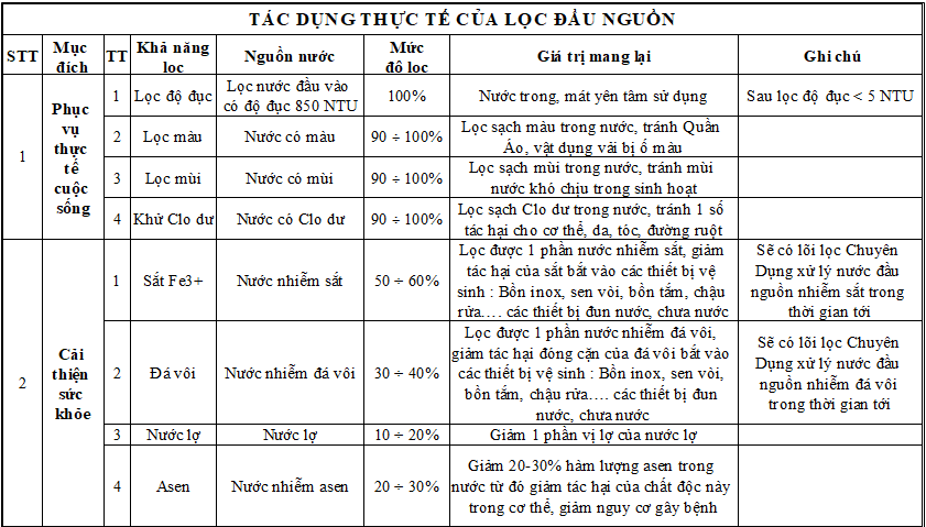 Giá trị của bộ lọc nước đầu nguồn mang lại cho người dùng.