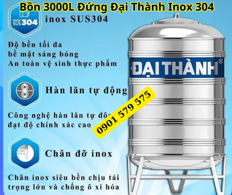 Với những lợi ích nổi bật về độ bền và khả năng chống ăn mòn, bồn 3000L đứng Đại Thành Inox 304 thực sự là một giải pháp tối ưu cho mọi nhu cầu.