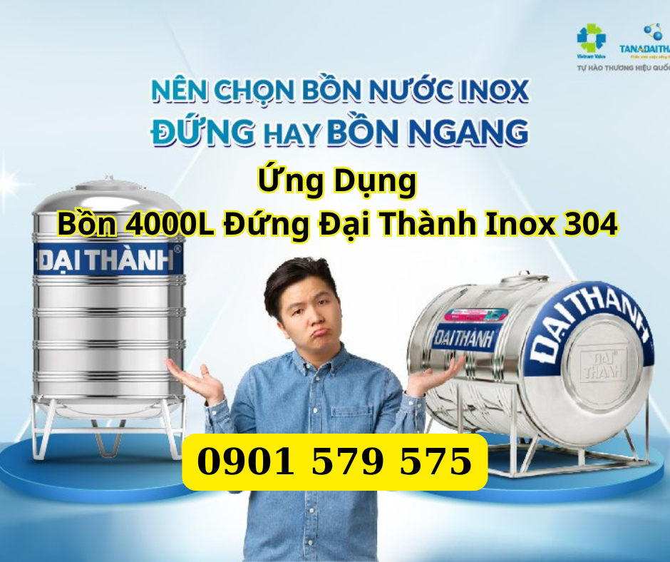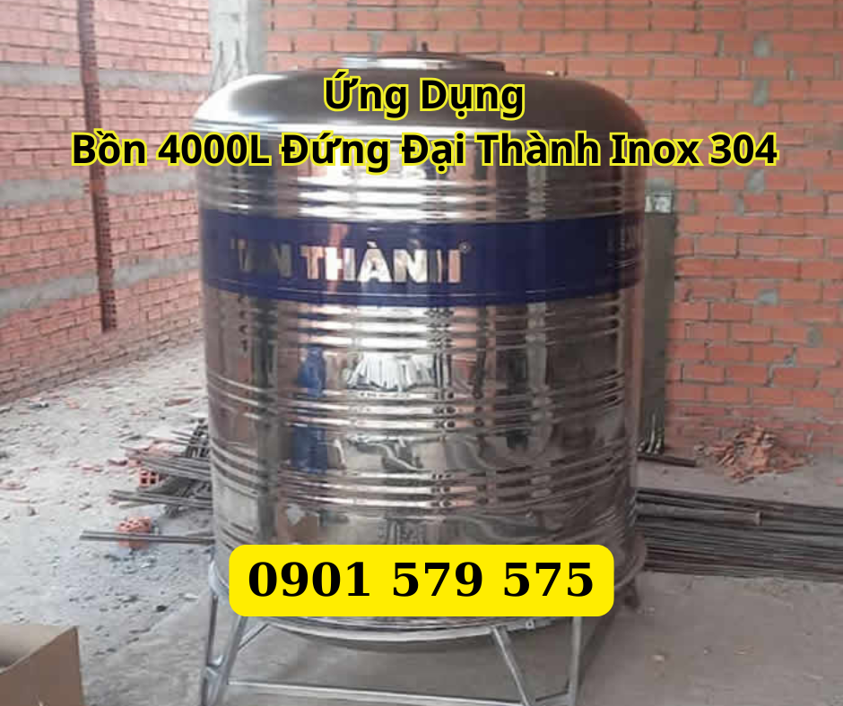 Ứng Dụng Bồn Nước 4000L Đứng Đại Thành Inox 304 Tại HCM