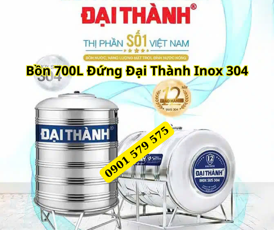 Bồn 700L Đứng Đại Thành Inox 304 Tại HCM