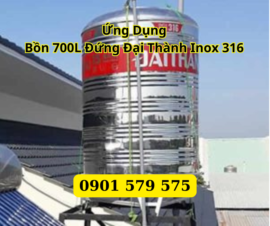 Ứng Dụng Bồn Nước 700L Đứng Đại Thành Inox 316 Tại HCM