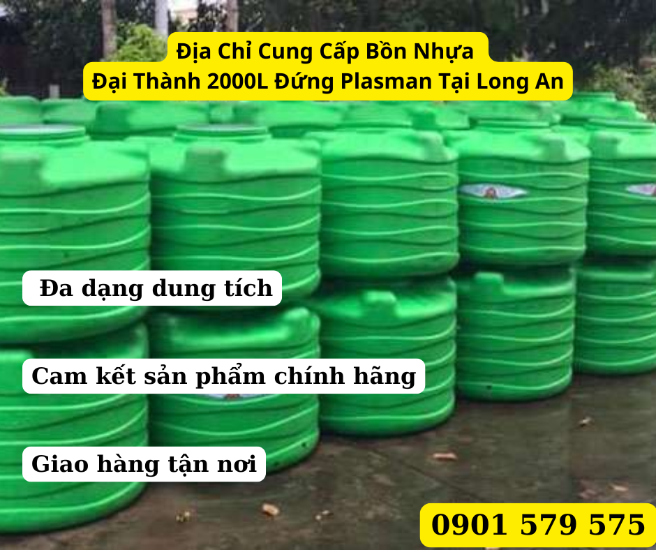 Địa chỉ mua bồn nhựa Đại Thành 2000L đứng Plasman tại Long An