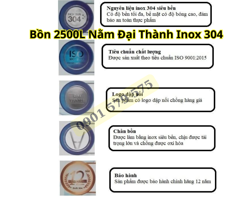 Bồn nước 2500L inox 304 từ thương hiệu Đại Thành chính là lựa chọn không thể bỏ qua! Với thiết kế bền bỉ, khả năng chống ăn mòn tuyệt đối và tính năng vượt trội, bồn nước này không chỉ giúp bạn yên tâm hơn về nguồn nước mà còn mang lại sự tiện lợi và tiết kiệm chi phí lâu dài.