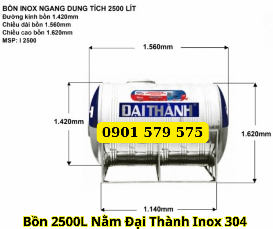 Bồn 2500L Nằm Inox 304 Đại Thành Tại HCM