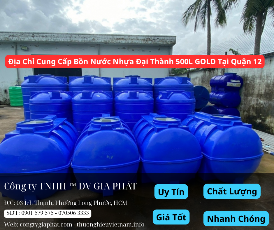 Địa điểm mua bồn nước nhựa Đại Thành 500L đứng GOLD tại Quận 12