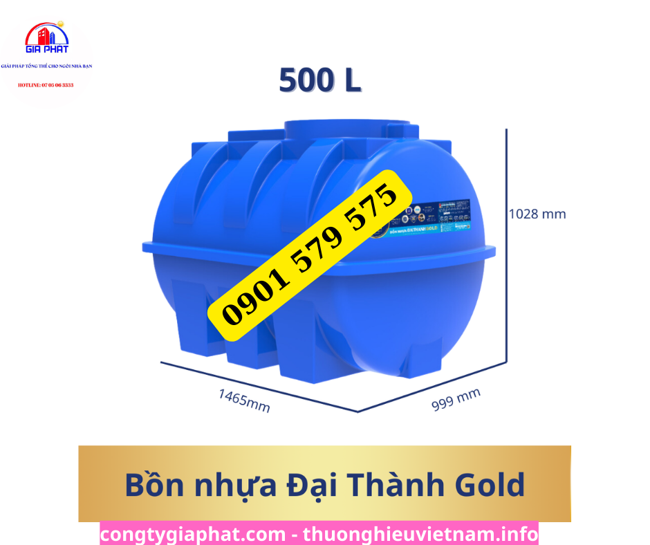 Đặc Điểm Kỹ Thuật Của Bồn Nhựa Đại Thành 500L Nằm GOLD