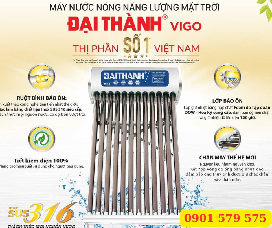 Công Nghệ Tiên Tiến Của Máy Nước Nóng Năng Lượng Mặt Trời Đại Thành 160L Vigo