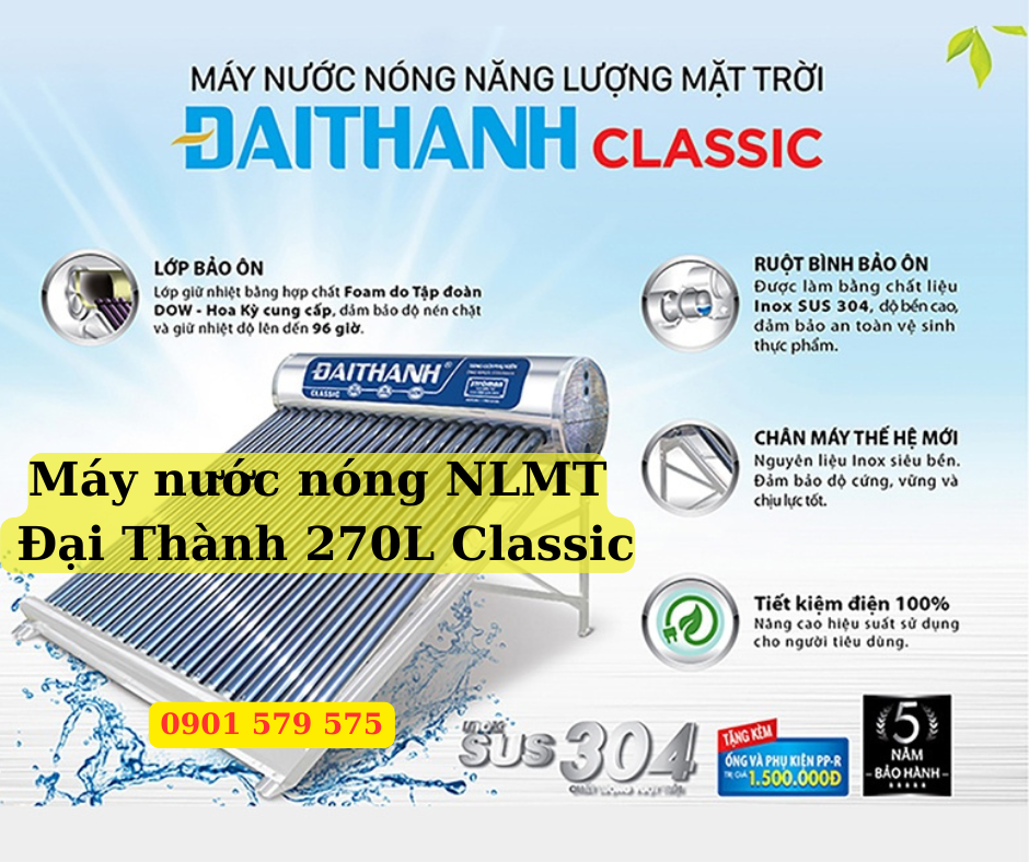 Đặc Điểm Kỹ Thuật Của Máy Nước Nóng Năng Lượng Mặt Trời Đại Thành 270L Classic