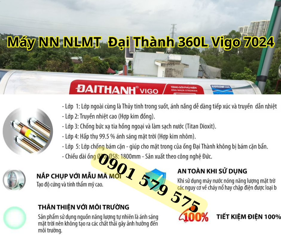 Bạn có bao giờ cảm thấy lo lắng về hóa đơn nước nóng mỗi tháng đang ngày càng tăng cao, trong khi thời tiết lại không thể đoán trước? Nếu có, thì máy nước nóng năng lượng mặt trời Đại Thành 360L Vigo 7024 chính là giải pháp hoàn hảo dành cho bạn! Với thiết kế hiện đại và hiệu suất vượt trội, sản phẩm này không chỉ giúp bạn tiết kiệm năng lượng mà còn bảo vệ môi trường.