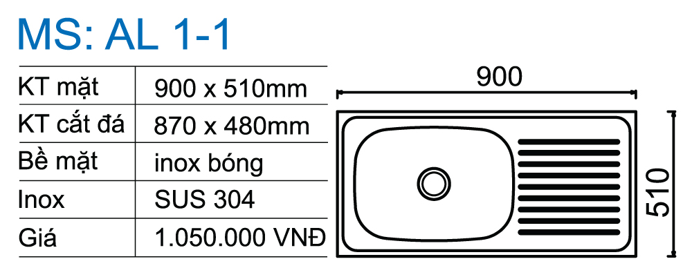 Chậu rửa inox Toàn Mỹ AL 1-1