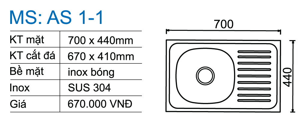 Chậu rửa inox Toàn Mỹ AS 1-1